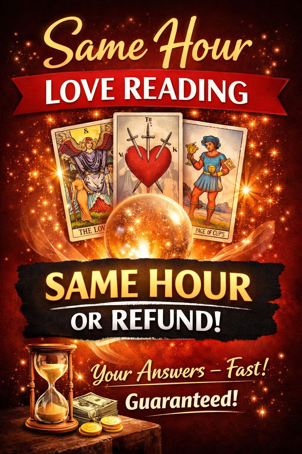 This professional Love Tarot reading is designed to give you clarity within one hour. Whether you are wondering about an ex-partner, searching for your soulmate, or need to know the truth about your current relationship, I provide deep spiritual insights without the wait.